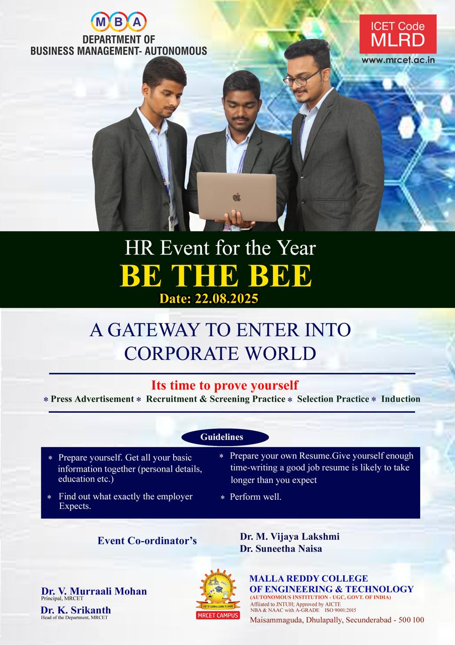 Malla Reddy College of Engineering and Technology (MRCET) has been in association with NHRD since 2008